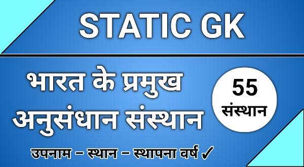 Bharat ke Pramukh Anusandhan Sansthan – भारत के प्रमुख 55 अनुसंधान संस्थान Static GK ! किस राज्य में कौनसा अनुसंधान संस्थान है, इनकी स्थापना, उपनाम व किस स्थान पर है ये सब बताया गया है ! अलग-अलग राज्य से महत्वपूर्ण सभी अनुसंधान संस्थान (Research Institute) अलग- अलग एवं आसान तरीके से बताए गए हैं ताकि आपको याद करने में आसानी हो ! ये सभी भारत के महत्वपूर्ण संस्थान हैं इनके बारे में प्रतियोगी परीक्षा में बहुत बार पूछा गया है ! आप इन्हें अवश्य याद करें