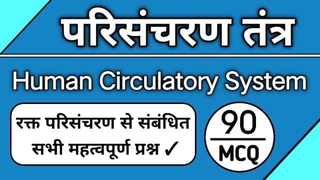 Blood Circulatory System in human MCQ I मानव रक्त परिसंचरण तंत्र से संबंधित अति महत्वपूर्ण 90 MCQ ! जीव विज्ञान के रक्त परिसंचरण तंत्र टॉपिक से संबधित सभी महत्वपूर्ण प्रश्न इस पोस्ट में उपलब्ध करवाए गए हैं जो प्रतियोगी परीक्षा की दृष्टि से आपके लिए उपयोगी साबित होंगे ! आप एक बार इन सभी 90 MCQ को अवश्य लगाएं !