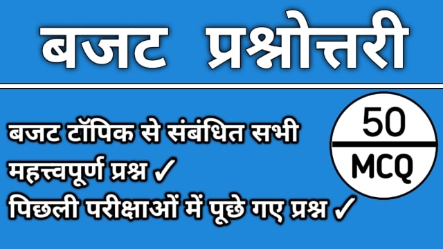 Budget Related Static Questions | बजट से संबंधित सभी महत्वपूर्ण स्टेटिक (50) प्रश्न इस पोस्ट में दिए गए हैं ! बजट से संबंधित ये सारे प्रश्न बार बार Competition Exams में पूछे जाते हैं ! इनमें से बहुत सारे प्रश्न पहले भी पूछे जा चुके हैं !