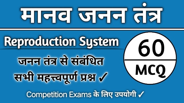 Human Reproductive System | Biology विषय का टॉपिक मानव जनन तंत्र से संबंधित महत्वपूर्ण प्रश्न | 60 MCQ जनन तंत्र से इस पोस्ट में दिए गए हैं ! ये सभी प्रश्न Competition Exams (UPSC, Banking, SSC, Railway, all State Level Exams) की दृष्टि से बहुत उपयोगी हैं ! आप एक बार जनन तंत्र से संबंधित MCQ लगा लोगे तो Exam में इस टॉपिक से कोई प्रश्न नहीं छूटेगा !