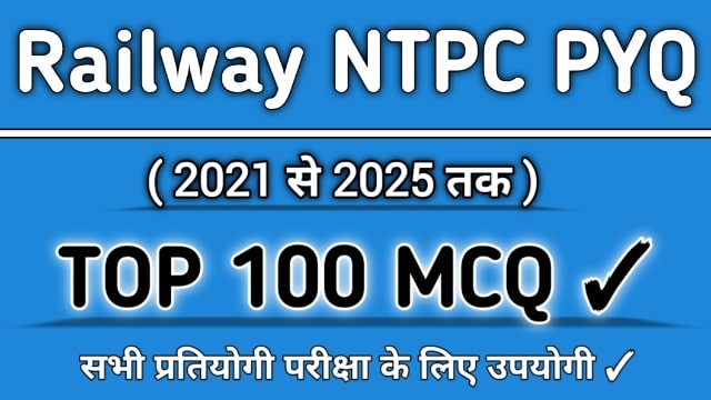 Top 100 Railway NTPC PYQ | रेल्वे (NTPC) परीक्षा में आए हुए सामान्य विज्ञान के महत्वपूर्ण 100 MCQ इस पोस्ट में दिए गए हैं ! ये सभी प्रश्न 2021से 2025 तक के NTPC Exams के Previous Year Questions हैं !